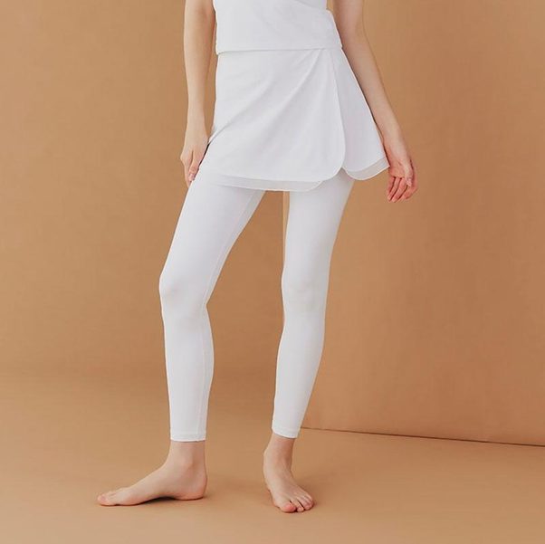 ラップスカート付きで、気になる腰まわりをカバーしてくれるヨガレギンス。