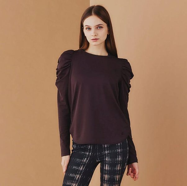 袖のギャザーによる、モードなシルエットが印象的なプルオーバー。
